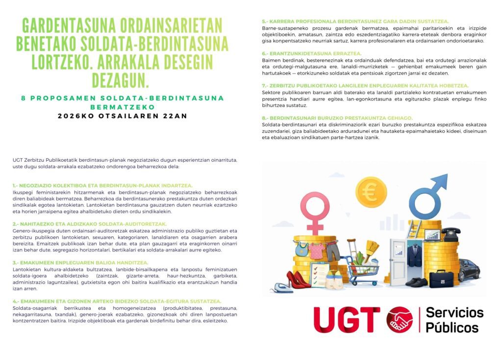 Por todo ello, con motivo del Día de la Igualdad Salarial, 22 de febrero de 2026, desde UGT Servicios Públicos presentamos la campaña Transparencia retributiva para una igualdad salarial real. Acabemos con la brecha, y así se llama el IMPRESCINDIBLES de Febrero de 2026.